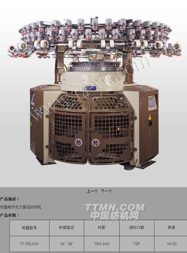 您所在的位置:紡機網 >> 大渝機械(廈門)有限公司 >> 雙面電子式大提花針織機Y-DEJ3W