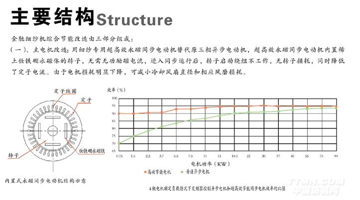 該高效風機可以覆蓋各種型號各規格細紗機,約6—7個月收回全部投資,對456至516錠細紗機用1.5 kW離心式高效吸棉風機改造原軸流風機,負壓會有提高,操作工非常歡迎,節能效果也十分明顯。