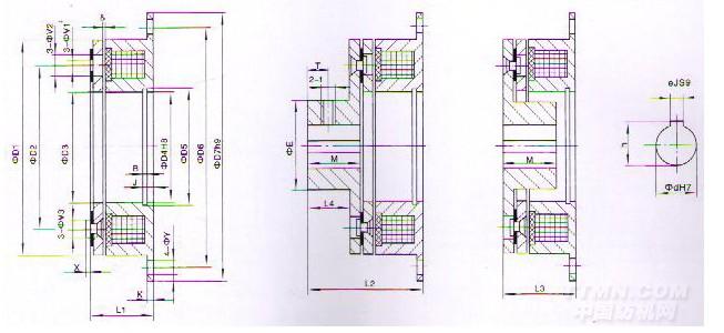 將電磁離合器及制動器改進輕合金制外殼內,是為一防滴型、分軸式離合器