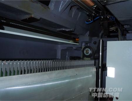 電腦橫機上的沉降片功能雖然能夠起到下壓線圈的功能,但是從開始編織到牽拉裝置對布片起作用的過程中,機器消耗了一定的紗線才能使布片的拉力均勻,才能開始正常的編織,這樣不僅浪費了時間,有浪費了紗線,而且編織下來的布片是連在一起的,對縫合和后處理不便,因此借用起底板,是拉力從起低時就均勻,而且不用編織廢紗,每編織一片能自動分開。