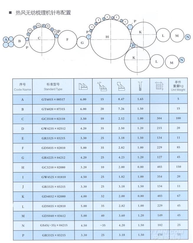 您所在的位置:紡機網 >> 光山白鯊針布有限公司 >> 熱風無紡梳理機針布配置