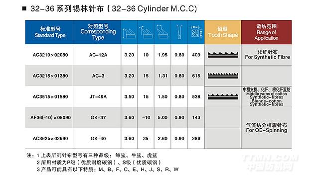- [產品]-->清梳聯用降結錫林針布 AC2030×1540