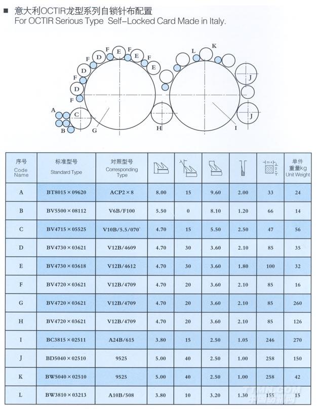 您所在的位置:紡機網 >> 光山白鯊針布有限公司 >> 意大利OCTIR龍型系列自鎖針布配置