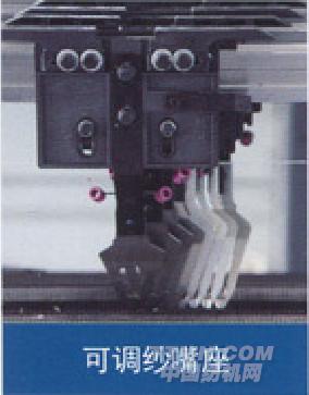2.自主研發的可調添紗導紗器專門運用于編織添紗組織,16把紗嘴,將添紗技術和其他結構相結合就能形成顏色和結構豐富多彩的效果。