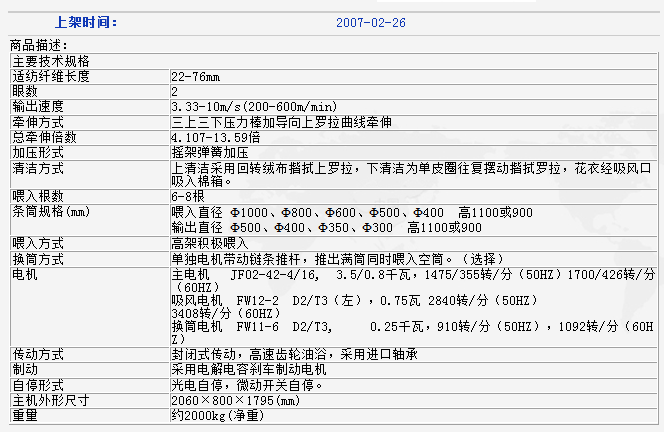 您所在的位置:紡機網 >> 中國紡織機械和技術進出口有限公司 >> FA306并條機