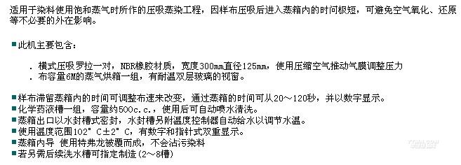 您所在的位置:紡機網 >> 廈門瑞比精密機械有限公司 >> 連續式壓吸蒸染試驗機