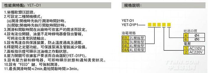 >> YET-D1抵抗式電動注油機(內置調時型)