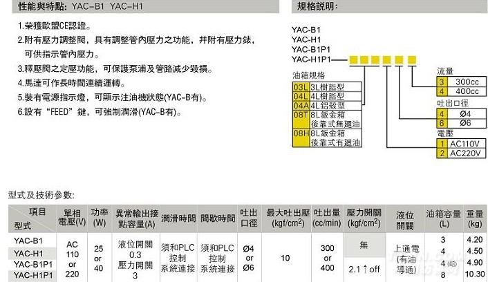 >> YAC-B1/H1抵抗式電動注油機(外接PLC控制型)