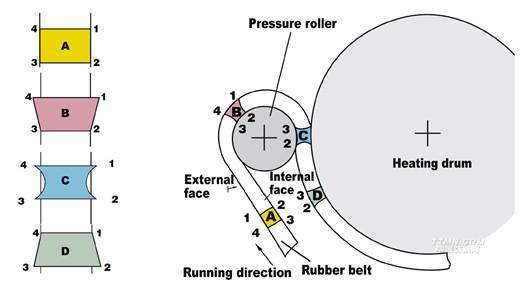 APOLY預縮毯採用帶狀纏繞式,此工法可以有效避免內裂且杜絕大規模片包式所引起的氣泡及裂口,且搭配1000噸加壓確保預縮毯材質充分緊密結合且於高速運轉時橡毯具有精確配重能保持縮率穩定。