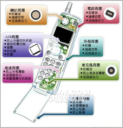(05)電池周圍:無污染、吸收衝擊音、提高氣密性。
