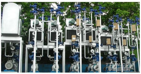 水冷式溫控單元組,換熱器采用管殼式或板式,換熱效率高,采用氣動或電動控制閥來加熱或冷卻,同時采用PID溫度控制,溫控精度可以達到+0.5度,主要應用于溫度控制精度高、升溫降溫速度比較頻繁的設備上,如電子業的PCB、CCL的壓合設備上、化學工業中的反應釜等。