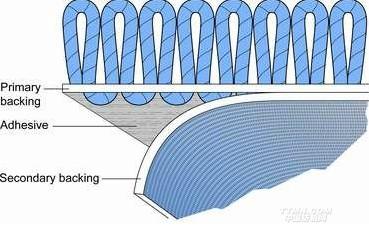 ? 首層基布 - 織造布或無紡布, 采用簇絨針在此基布上植入紗線.