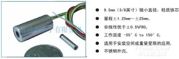 極典電子公司推出的GA09系列是9.5mm直徑、可選量程從±1.25mm至±25mm、交流供電的小型非接觸式位移傳感器,既能滿足OEM客戶的應用,也能滿足終端用戶的要求。輕質的鐵芯使這些微型的LVDT非常適用于高響應的動態計量,有助于減小應力以及保證鐵芯激勵組件結構的完整性。線圈和鐵芯直接的緊密電氣耦合可得到高度靈敏的測量效果。磁性不銹鋼外殼可以抗電磁干擾、屏蔽靜電。