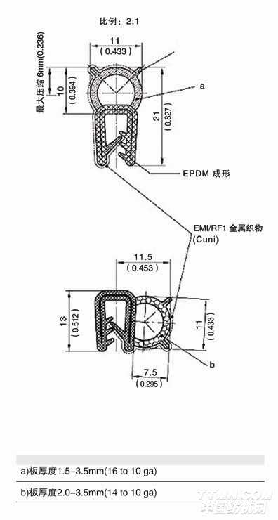 屏蔽用門密封條,是在page 5-150上的209-0201,209-0202上面附巖—層金層織物(具有屏蔽作用)而制成。材料:基體:橡膠織物:含CuNi