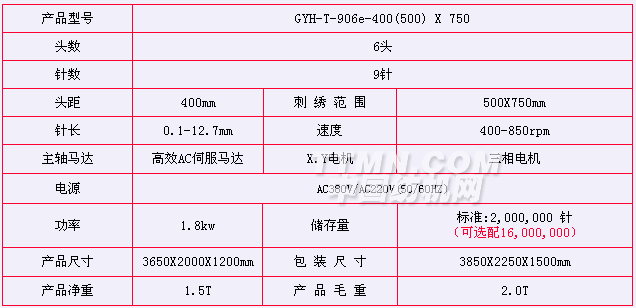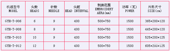 植絨繡主要技術參數: