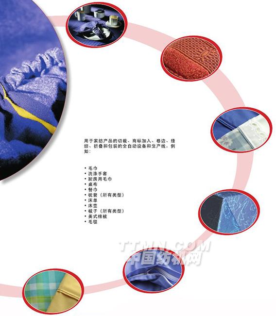 用于家紡產(chǎn)品的切裁、商標(biāo)加入、卷邊、縫紉、折疊和包裝的全自動(dòng)設(shè)備和生產(chǎn)線。